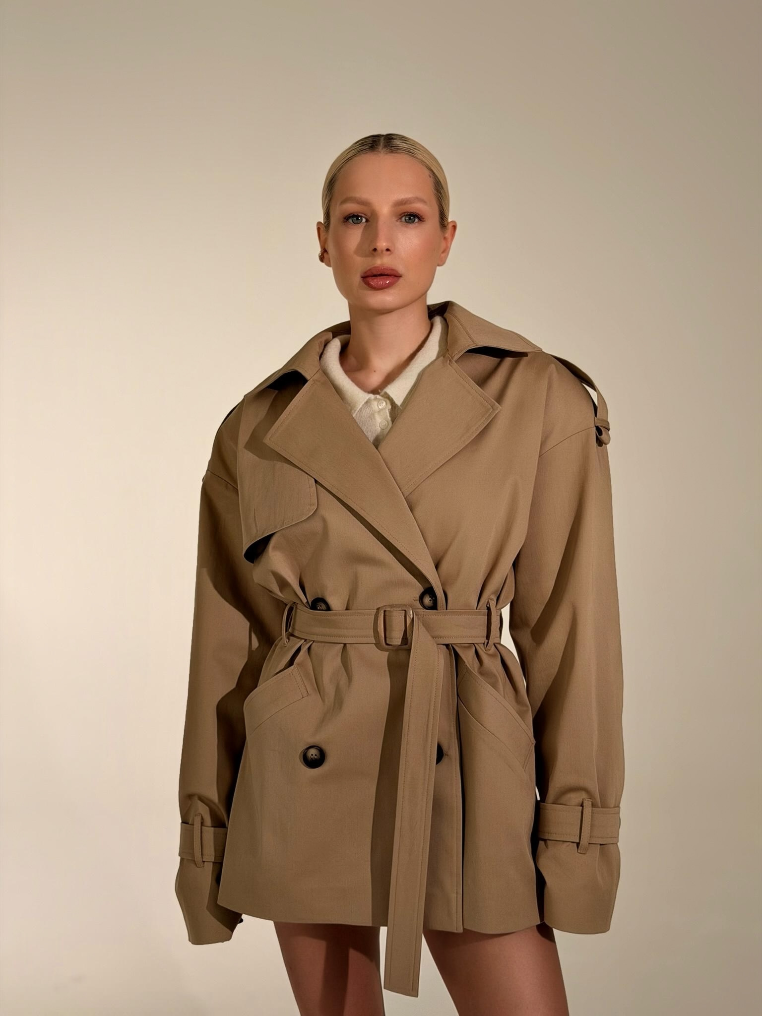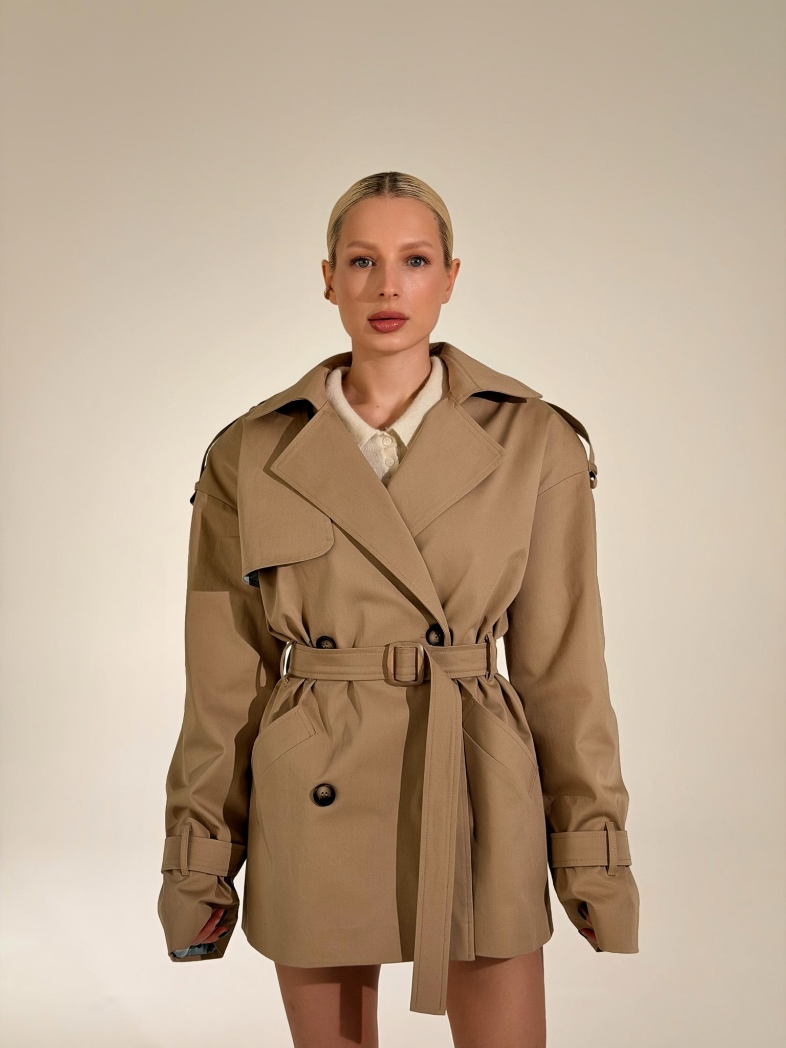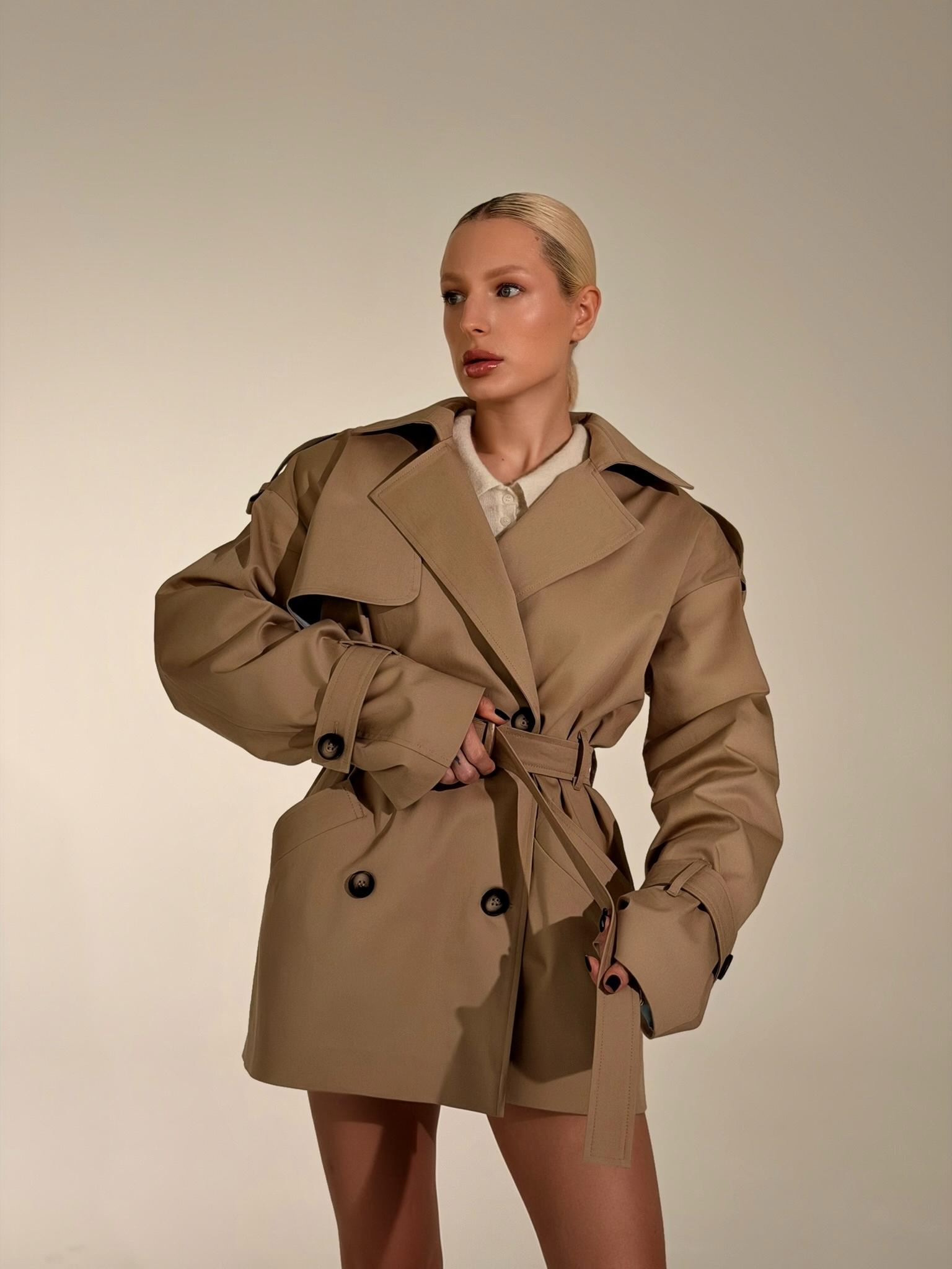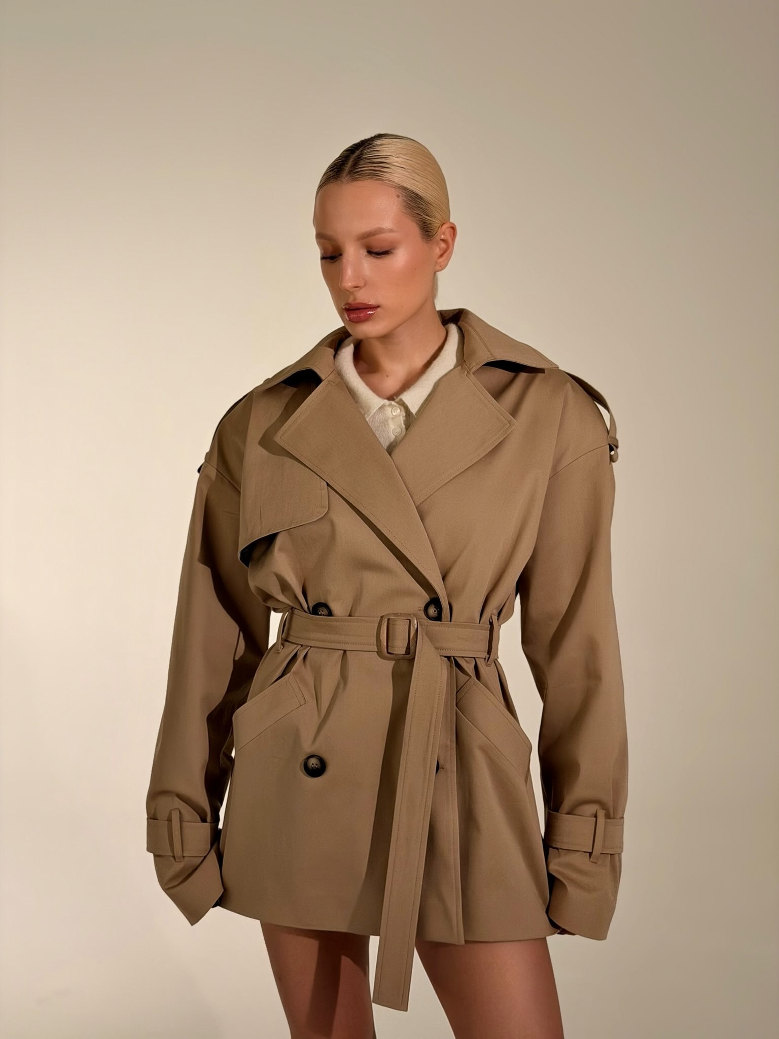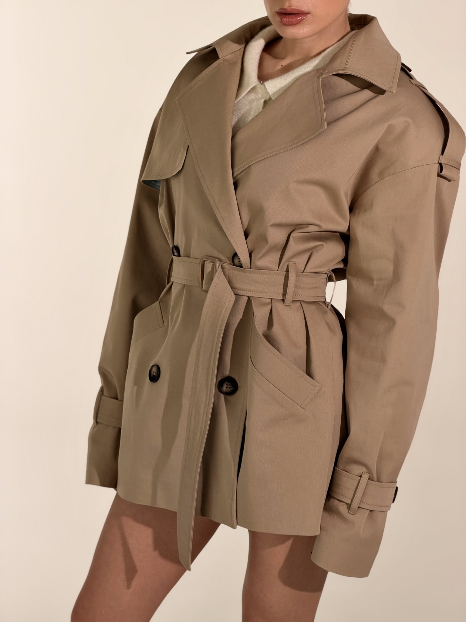 Есть вещи, которые созданы не просто для гардероба, а для особенного настроения. Наш новый укороченный тренч THE SAINT — это воплощение благородства и тактильного наслаждения.